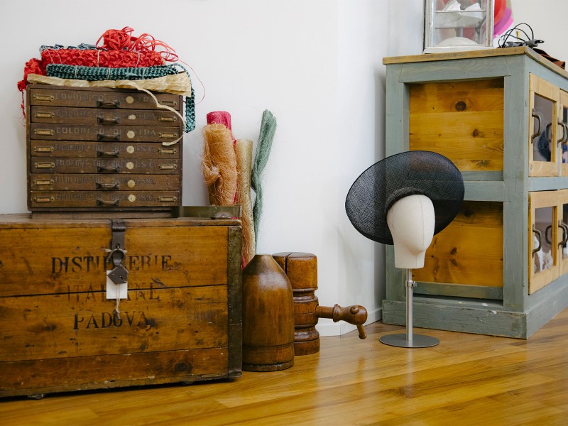 Ilaria Soncini welcomes you to her atelier, Ilariusss, among the creations that have conquered the most demanding heads and the most glittering runways. Scissors, measuring tape, felt, embroidery, pins, and thimbles crowd the old worktable, a precious piece of vintage furniture like the dressers, hatboxes, and posters on the walls. On the shelves are wooden hat blocks and finished products, alongside sketches that are still just inspirations. Here, the boldest ideas take form and color. Ilariusss hats carry the passion and craftsmanship of Made in Italy to the world.