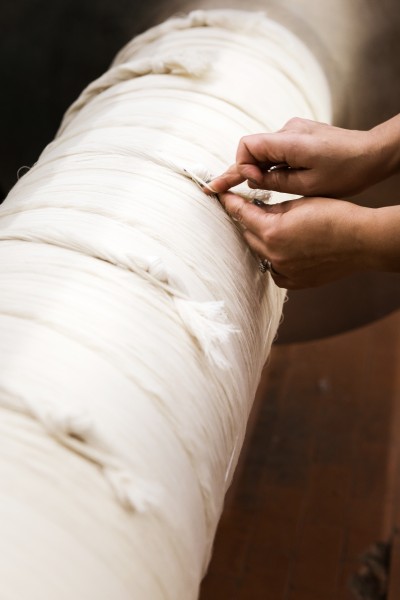 It is one of the most important luxury manufacturing groups, a family story continuing for fourteen generations, successfully blending modernity—the factory is a modern, quiet, and minimal building—with the most respectful traditional processes, starting with carding, a sort of finishing of the fabric using thistle flowers.