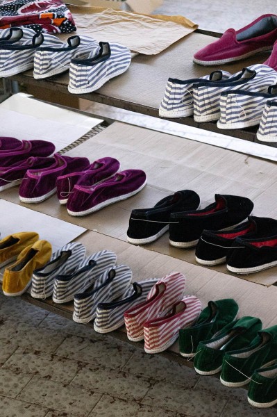 La villetta è bianca, a due piani. Dietro la casa, a Gonars, ecco il capannone. E la scoperta di un mondo: scaffali zeppi di tessuti colorati, i copertoni delle biciclette, i sacchi di iuta, i cartoni delle pizze... È il mondo delle scarpe che Lis Furlanis realizza tutte a mano, esattamente come avveniva nell’Ottocento. Oggi le furlane le calza anche George Clooney, ma sono il simbolo di un’economia domestica povera, basata su forza, resistenza e dignità. Nel loro laboratorio Massimo e Cristina realizzano le furlane adottando la stessa tecnica. Ogni scarpez è un pezzo unico e nessuna furlana è uguale all’altra.