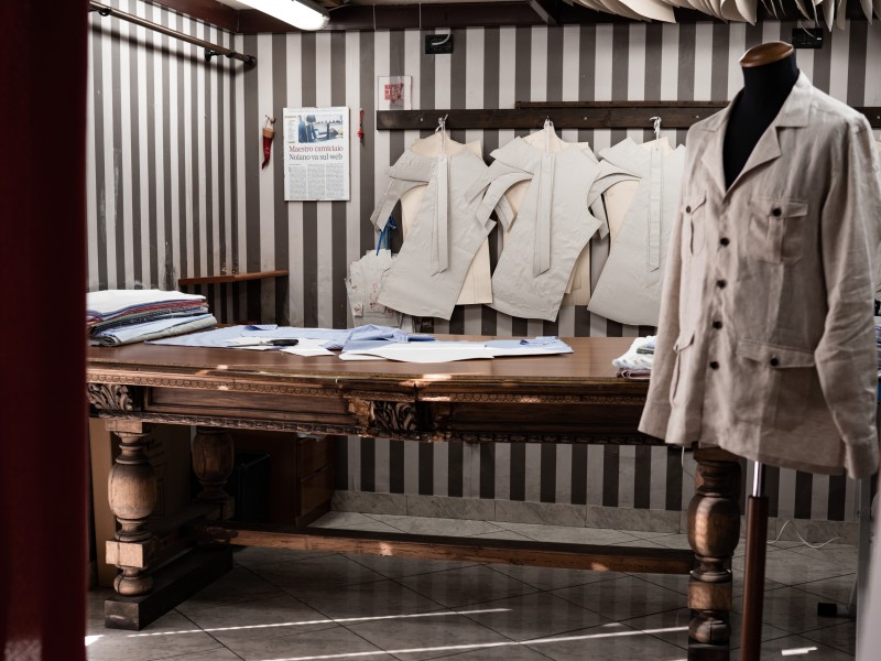 «Oltre a bere un ottimo caffè, mostreremo l’intero processo di lavorazione di una camicia sartoriale fatta interamente a mano». È questa l’accoglienza di Alberto Nolano in persona, nel suo laboratorio: la camiceria. In Corso Amedeo di Savoia, la strada che collega il quartiere Sanità a Capodimonte, a due passi dalle catacombe di San Gennaro, si trovano la passione e la ricerca di Alberto e l’esperienza di una famiglia intera. Per realizzare la camicia perfetta: «come fatta in casa», ci sono anche sua madre, sua zia e gli attrezzi per la macchina da cucire della nonna Addolorata. Se l’accuratezza del ben fatto si scopre tra i tavoli in legno, i tessuti, il metro da sarto e i cartamodelli dei colletti, le corna appese alle pareti ci ricordano il colore della città.