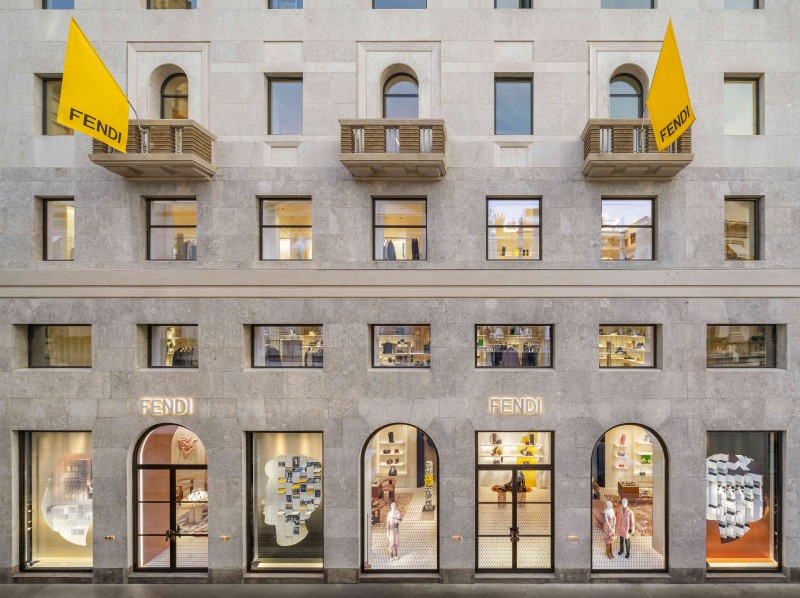 Sette piani, 910 metri quadrati, un angolo di Roma trapiantato a Milano. In un edificio razionalista, opera di Emilio Lancia, tra corso Matteotti e via Montenapoleone, ristrutturato rispettando la storia e innestando i tratti distintivi della Maison, ecco il nuovo Palazzo FENDI, un negozio, sì, ma quasi una galleria d’arte con opere di Alvarez, Sironi, Pomodoro e Albini.