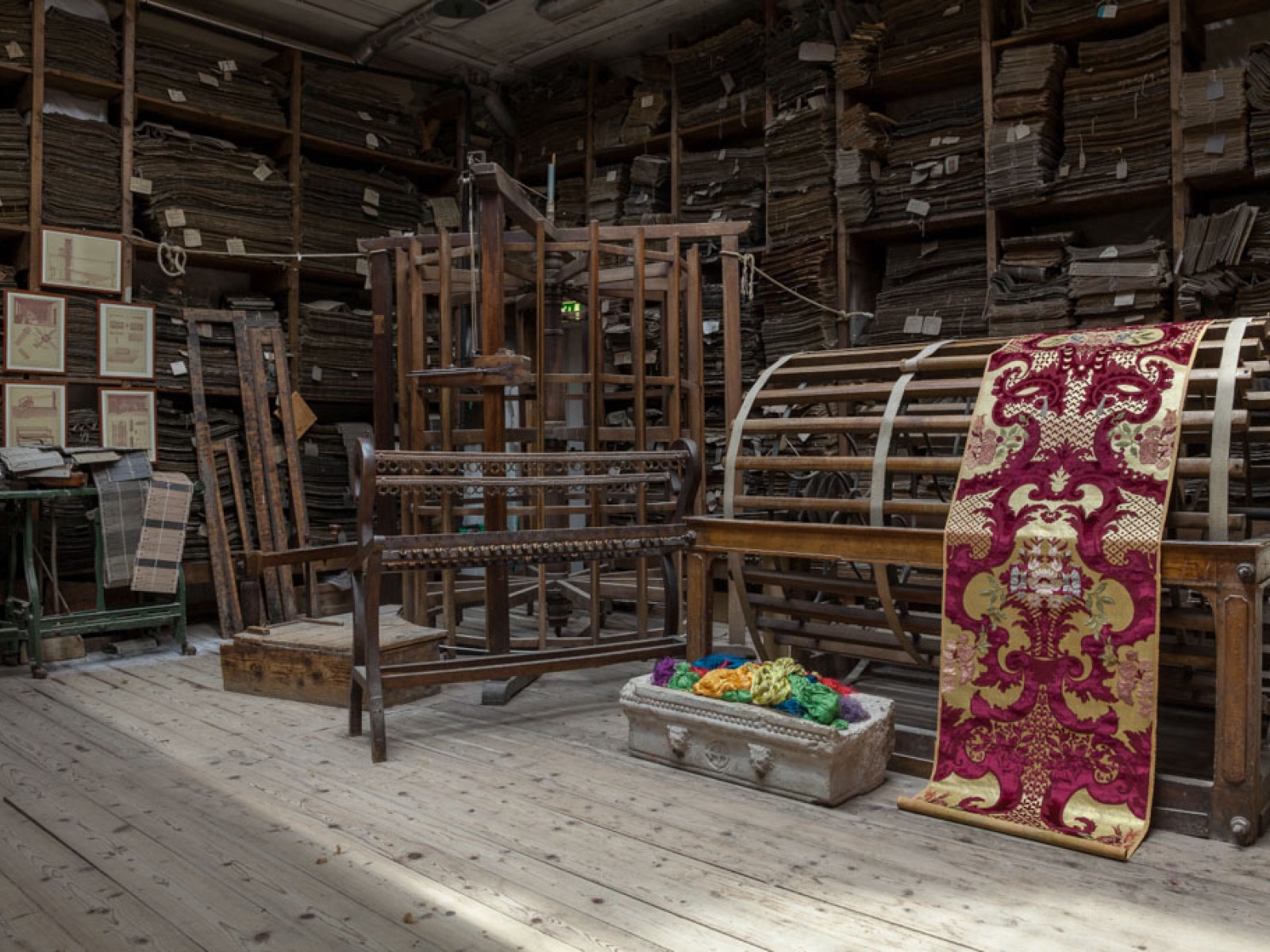 La sede della Tessitura Luigi Bevilacqua sorge nel cuore del sestiere Santa Croce, a due passi dal Canal Grande: è lì che dal Cinquecento la famiglia Bevilacqua mantiene viva una delle tradizioni più antiche della città. Oltre il portone di ingresso, i telai settecenteschi recuperati da Luigi Bevilacqua nel 1875 dalla Scuola della Seta della Serenissima, gli stessi raffigurati nell’Enciclopedia di Diderot e D’Alembert. Non solo velluti fatti a mano, ma anche broccati, damaschi, lampassi e rasi per teatri e residenze prestigiose come la Casa Bianca, il Cremlino e il Municipio di Stoccolma.