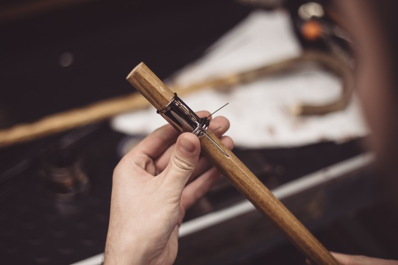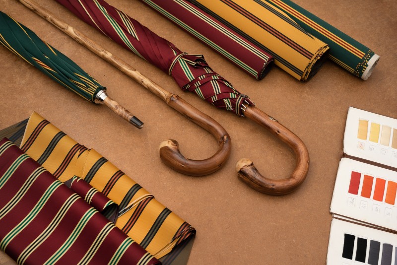 Oltre la discesa in cemento che ricorda un garage di via Ripamonti a Milano, si scopre come si fanno gli ombrelli ad arte. Un segreto di sei generazioni di famiglia di ombrellai e un nome: Francesco Maglia. Questo perché un figlio è sempre stato chiamato così. Sarà proprio lui in persona ad aprire le porte del laboratorio dove entrano star hollywoodiane, famiglie reali e nobili inglesi per scegliere tra le oltre venticinque tipologie di legno (estirpato, non tagliato) per l’impugnatura o il tessuto più adatto tra i trecentocinquanta presenti o i tremila raccolti nell’archivio del passato. Regimental, rigati e gessati vengono cuciti e ricamati a mano nel reparto sartoria mentre il taglio, la prova tecnica degli oltre centodieci passaggi necessari per realizzare l’ombrello perfetto, si fanno su tavoli di legno e miriadi di cassetti che ricordano un’officina. Uno spazio affascinante per un saper fare senza tempo, apprezzato da chi ama il ben fatto. Un ombrello realizzato da queste mani dura oltre cinquant’anni e in caso di rottura, come un Lusciatt (l’ombrellaio ambulante che nell’800 lil aggiustava) che si intravede tra le pubblicità vintage appese ad una parete, si sistema per durare per sempre, come un gioiello.