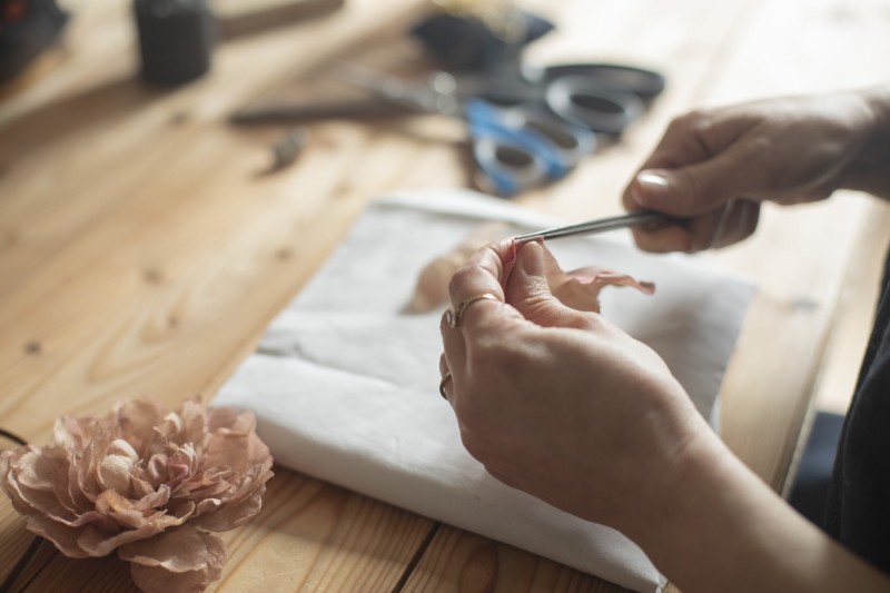 «I pistilli per i fiori in seta li prendo da un pistillificio francese che si occupa solo di questo dal 1902: sono andata personalmente a visitare la fabbrica dove sembra che il tempo si sia fermato. Questi sono i dettagli che fanno la differenza».