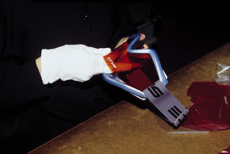“Fabbrica italiana articoli ottici, astucci per ottica”. Si leggeva questo sopra la sede basata a Musso, è invece nel 1945 che l’azienda si sposta a Gravedona, dentro a un palazzo seicentesco affacciato sul lago. In principio si realizzavano astucci per occhiali che sembravano scrigni preziosi, poi i primi occhiali da vista e quelli da lavoro per i mugnai (delle maschere protettive per gli scalpellini del paese, dove c’erano cave di marmo). Seguono le maschere per motociclisti e infine, dopo la Bella Vita e la scoperta dell’occhiale da sole, quello da sci.